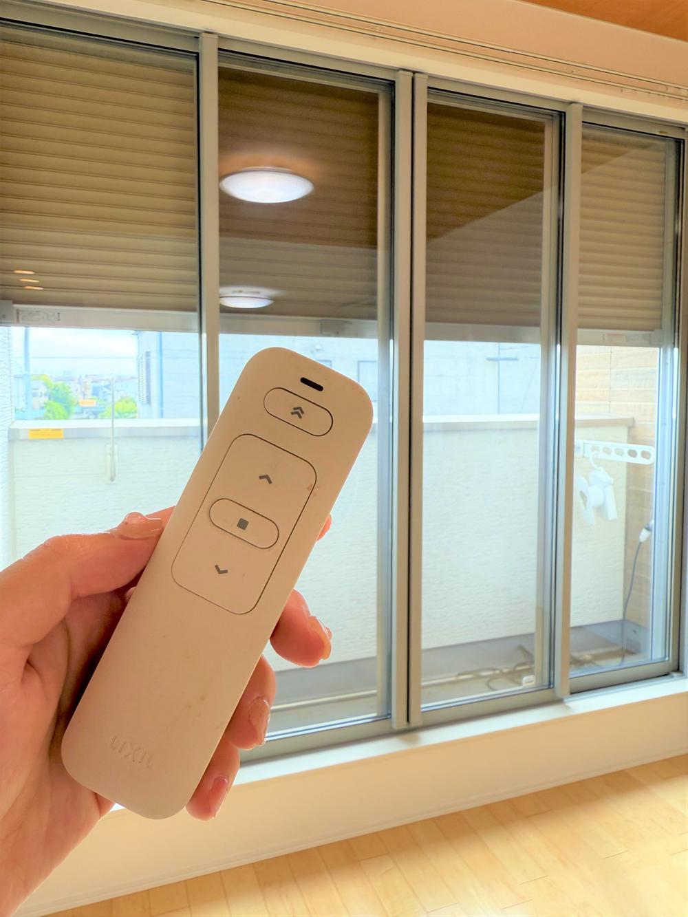 【電動シャッター(リビング)-安心】シャッターがあることで、暮らしに防犯性をプラス!リモコンで開閉できますので、身体にも負担なく、また音も気にならないので、快適に生活していただくことができます!