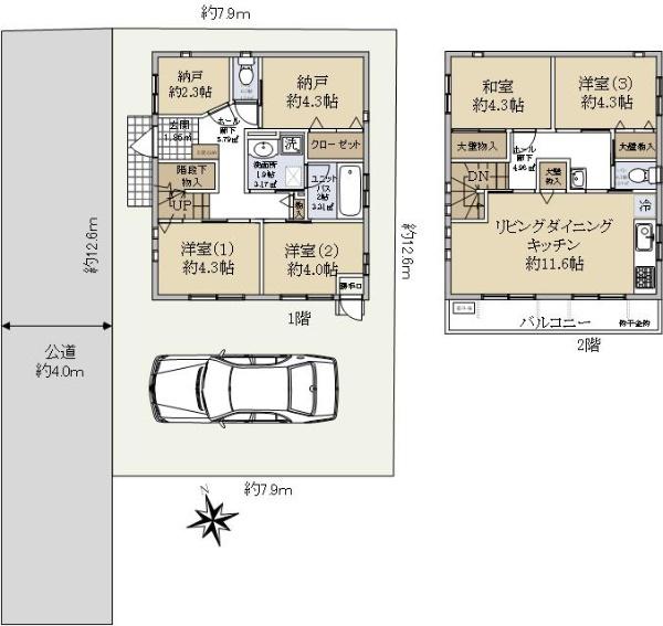 | 土地権利 | 所有権 | 私道負担・道路 | 無、西4m幅(接道幅12.6m) | ||