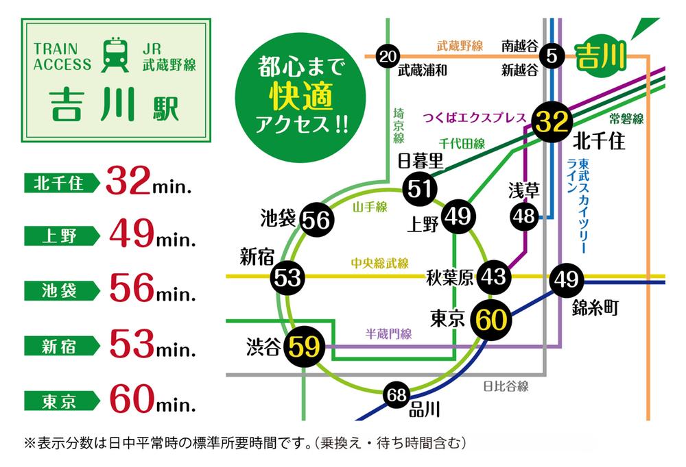 JR武蔵野線「吉川」バス28分川藤歩11分 JR武蔵野線「吉川美南」歩59分 JR武蔵野線「越谷レイクタウン」歩60分 | ||||