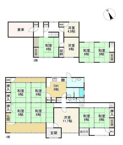| 備考 | ※駐車台数は車種による※附属建物有①車庫、軽量鉄骨造鋼板葺平家建、15.30㎡、昭和38年3月築 ②物置、木造瓦葺平家建、20.47㎡、昭和42年3月築 ③倉庫、鉄骨造亜鉛メッキ鋼板葺2階建、1階51.25㎡ 2階51.25㎡、昭和53年12月築 ④便所、木造瓦葺平家建、1.91㎡、昭和56年10月築※セットバック要(北東約9.04㎡、南西約23.75㎡)※増築未登記有:2階倉庫部分※売主の契約不適合責任免責、付帯設備の故障不具合について責任免責・セットバック:有・私道負担:なし・他交通手段:JR東海道本線稲枝駅バス29分上西川停歩5分・12DKの間取りの中古戸建です!土地約356.87坪!駐車スペース3台分ございます(車種によります)!お気軽にお問い合わせください! | ||||