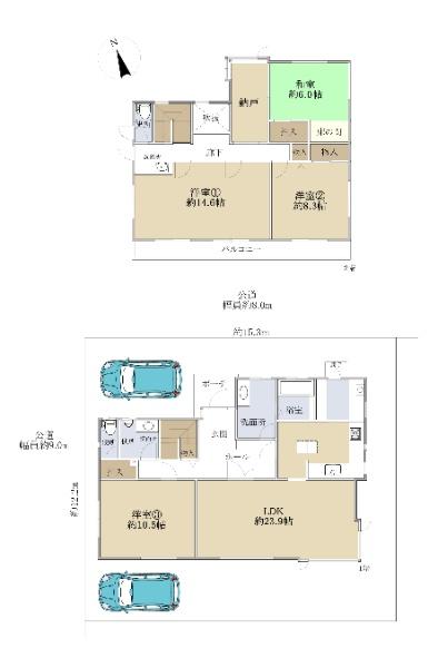| 土地権利 | 所有権 | 私道負担・道路 | 無、北東8m幅(接道幅15.3m)、北西9m幅(接道幅12.2m) | ||