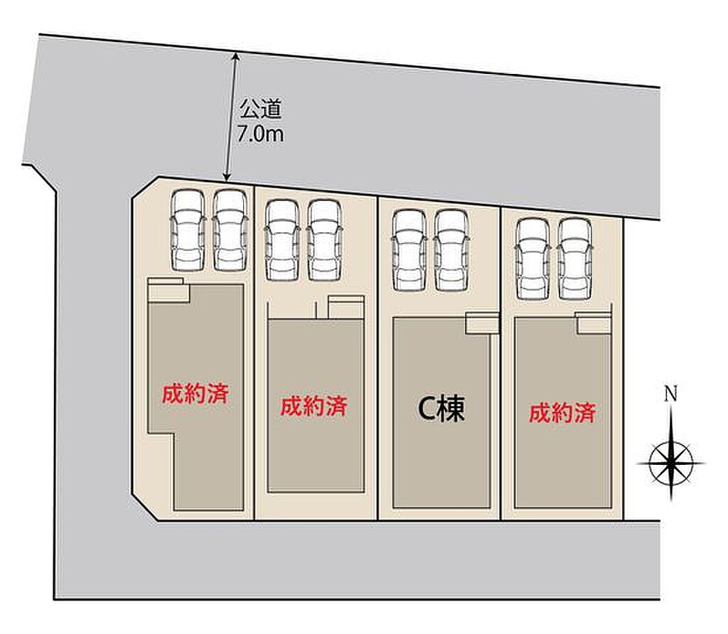 | 私道負担・道路 | - | 接道状況 | ( 北 7m 公道 間口6.5m ) | ||