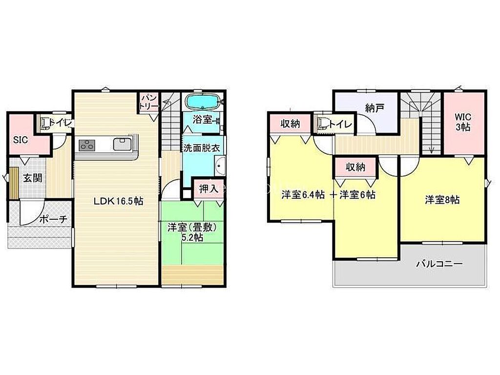 建物構造 | 木造/2階建 | 間取り詳細(帖) | リビングダイニングキッチン 16.5帖和室 4.5畳洋室 12帖洋室 8帖 | ||