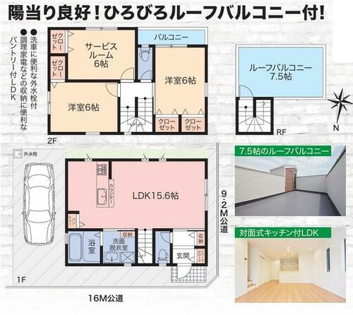 | 私道負担・道路 | - | 接道状況 | 北 16.0m 公道 接面10.0m西 9.2m 公道 接面6.3m | ||