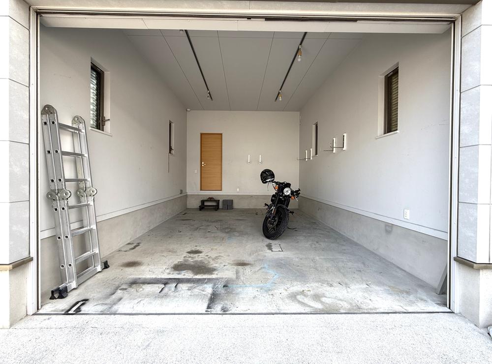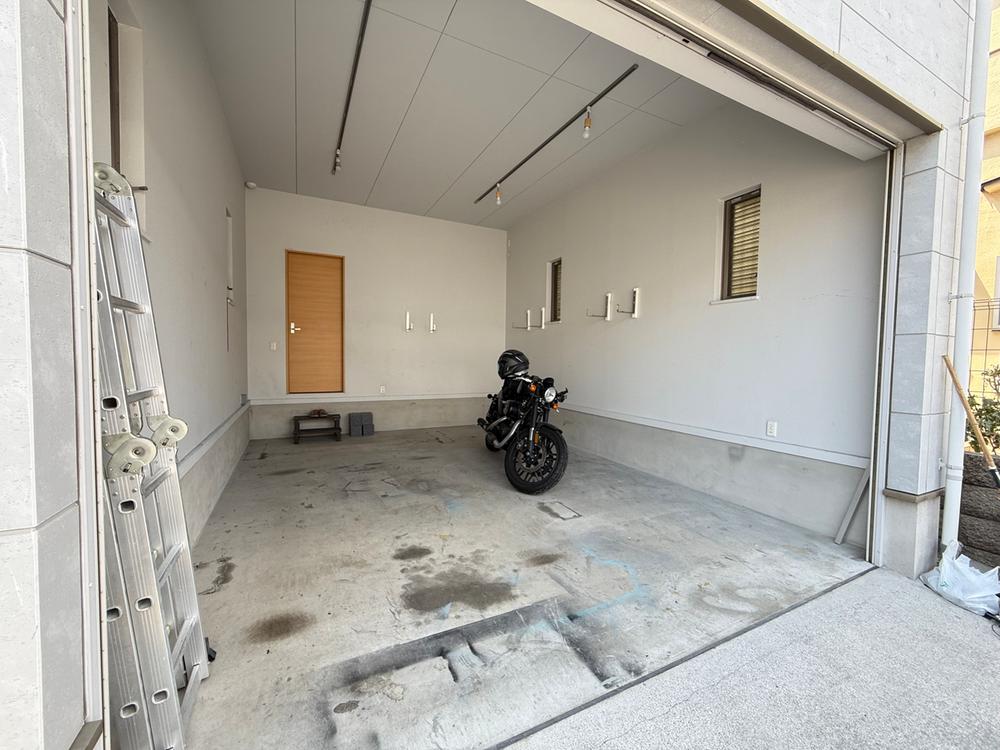 趣味と暮らしを両立する天井高3.5mのシャッターガレージ付き戸建て。