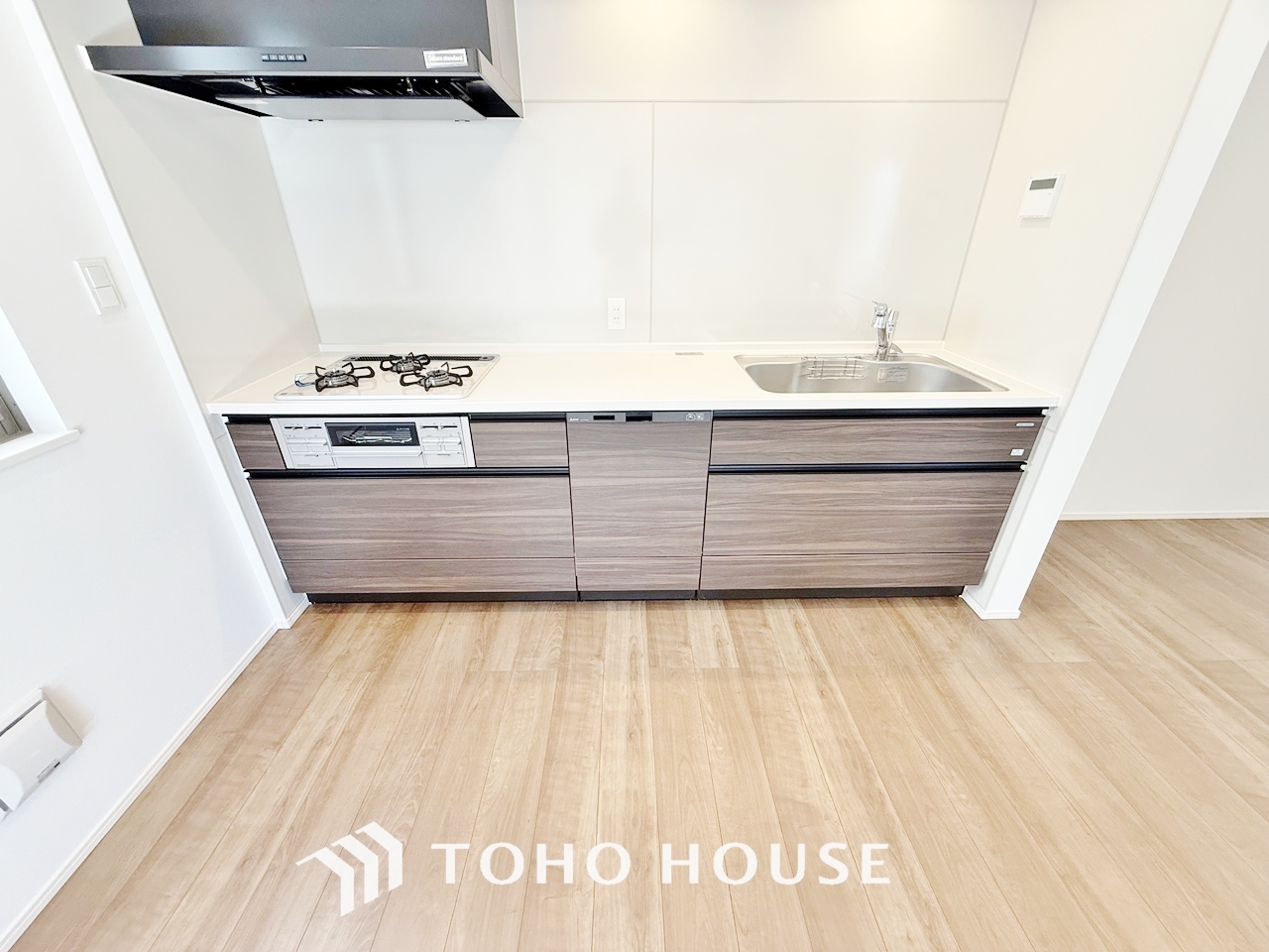 「キッチン」食洗機、3口コンロ、スライド収納等、日々の家事効率を上げる嬉しい設備を搭載。≪もっと快適に≫を実現するシステムキッチンです。