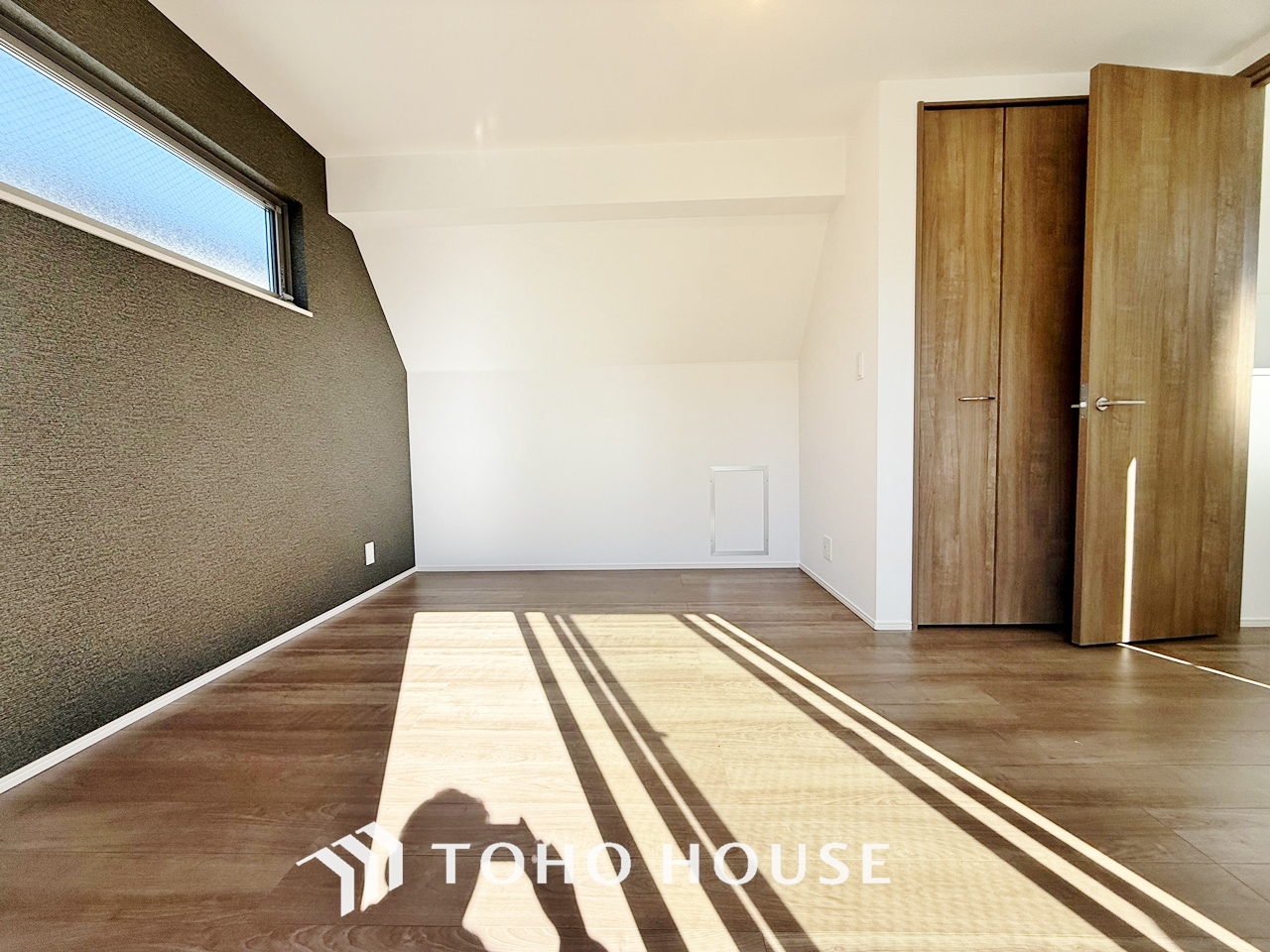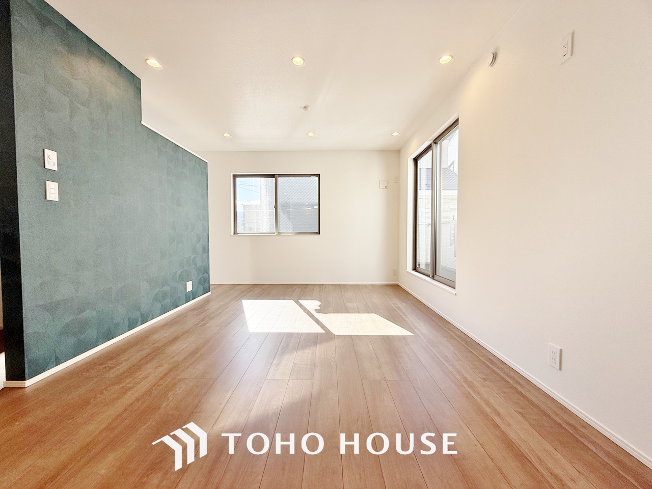 「ひと味違う演出」おしゃれなアクセントクロスが、インテリア性の高い空間へ。床材とマッチし、モダンで上質な雰囲気を演出します。