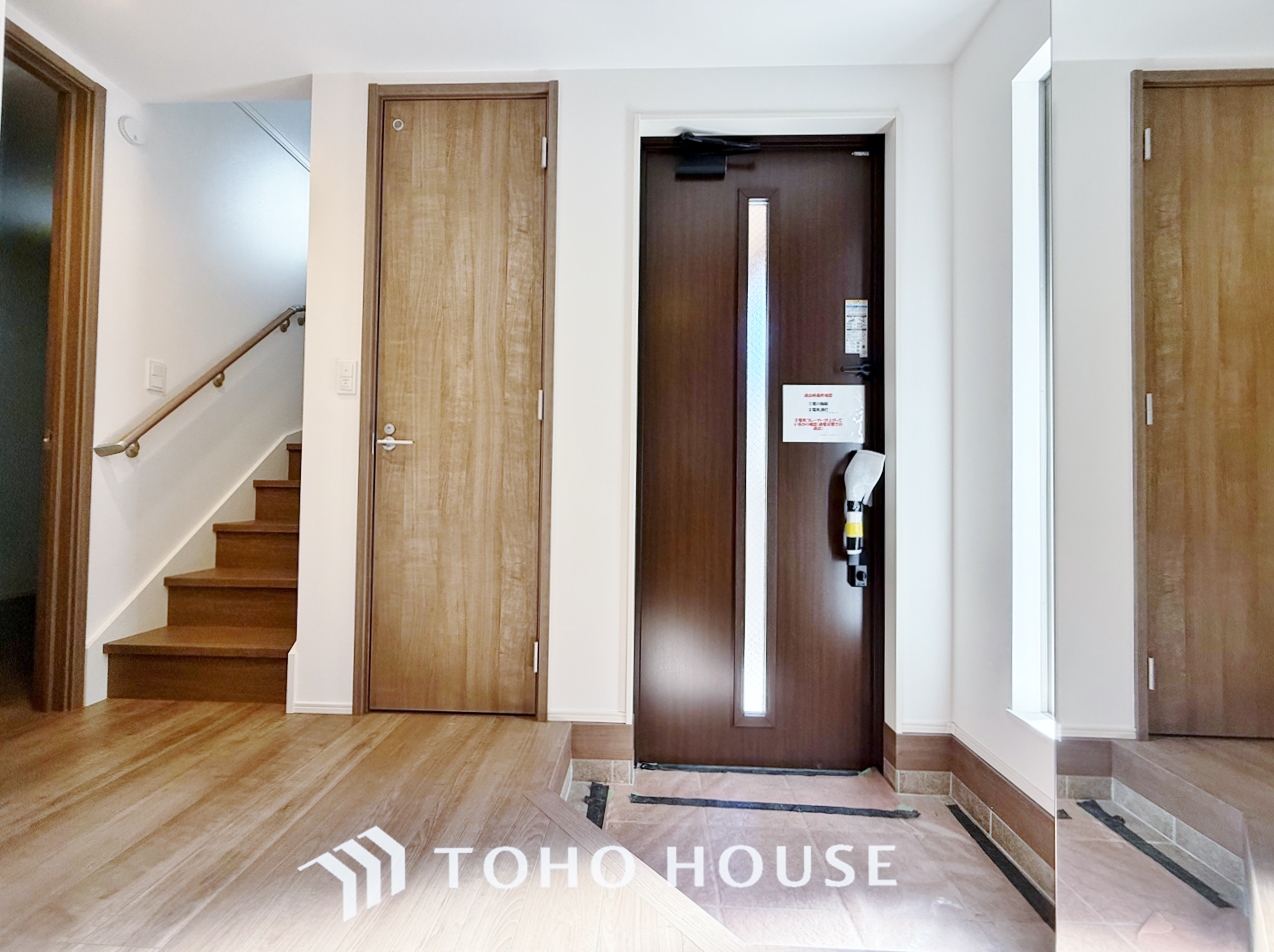 「見える安心」をカタチにしました。誰が来てもわかる様にモニター付きインターホンを設置。家事導線を考慮した個所に設置し、防犯性と利便性に優れ快適と安らぎを合わせた優しい設計。
