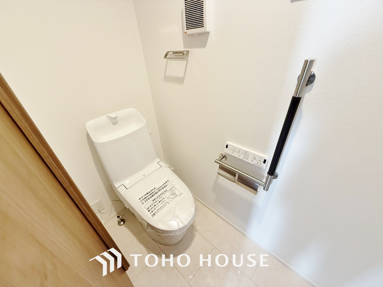 「温水洗浄便座付きトイレ」優れた節水効果や汚れが付きにくい便座など、ほしかった機能が揃ったウォシュレット一体型トイレです。収納に便利な吊戸棚と洗面を備え付けています。