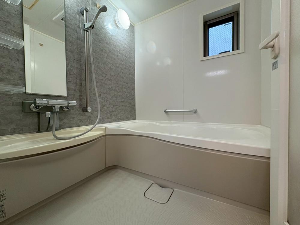 【疲れを癒す場所】アクセントパネルの付いた浴室は、高級感があります。大きなバスタブが毎日の疲れを癒してくれますね。浴室乾燥機能も付いておりますので、雨の日や花粉の気になる日のお洗濯も安心です。