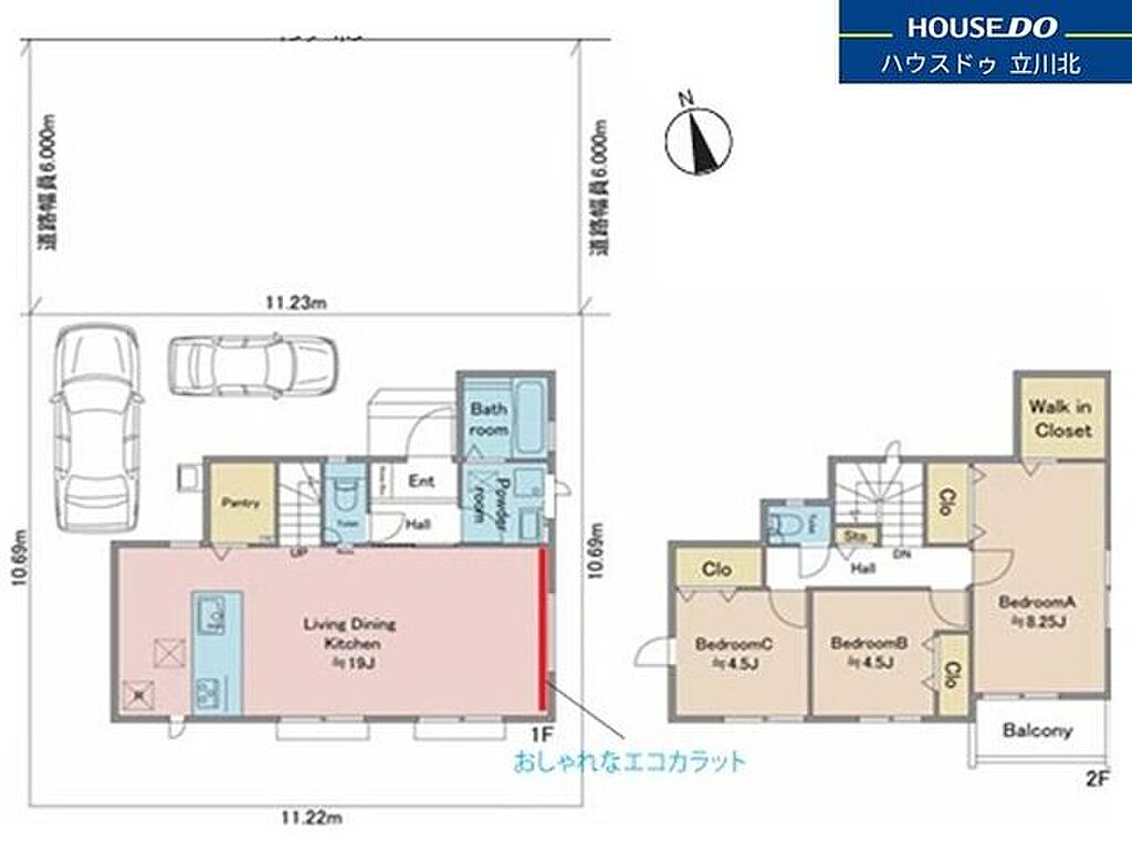 | 建物構造 | 木造/2階建 | 間取り詳細(帖) | リビングダイニングキッチン 19帖(1階)洋室 4.5帖(2階)洋室 4.5帖(2階)洋室 8.2帖(2階) | ||