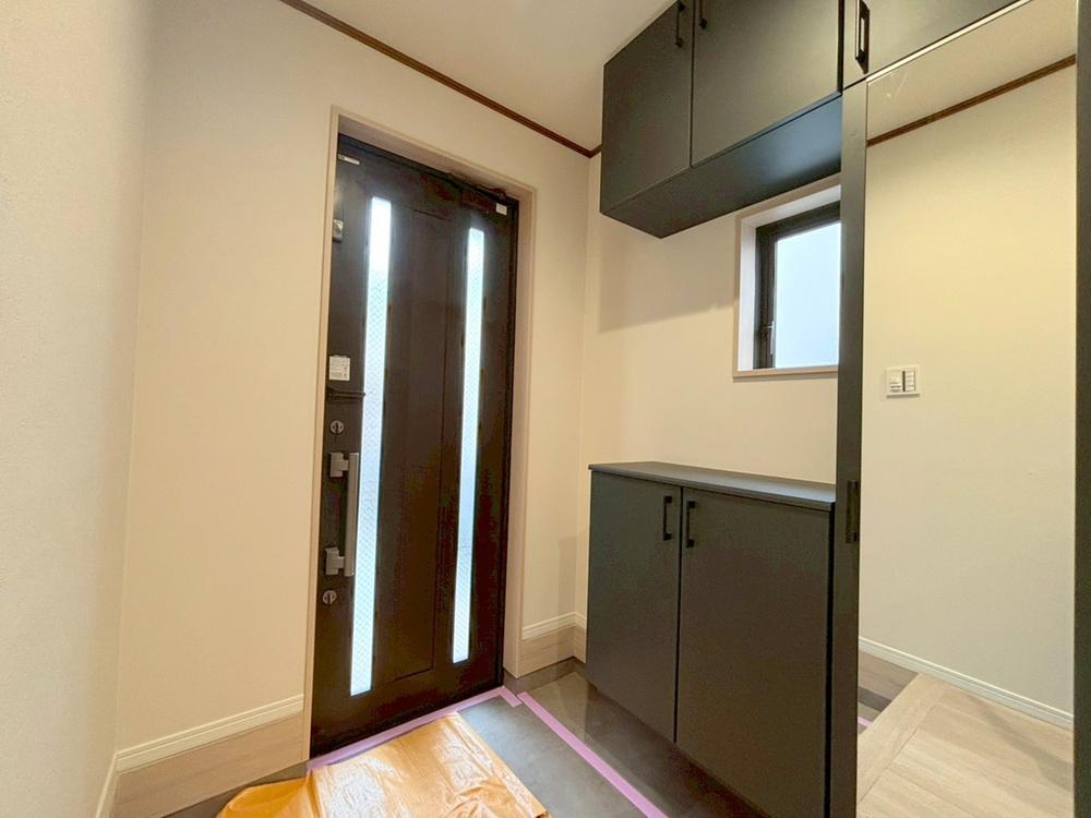 リフォーム完了しました♪明るく清潔感のある玄関は、帰宅時にも気持ちよく迎えてくれる空間です。収納力もしっかり確保されているため、ご家族の靴や外出用品もすっきり収まります♪♪(令和7年10月26日撮影)