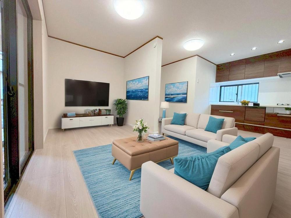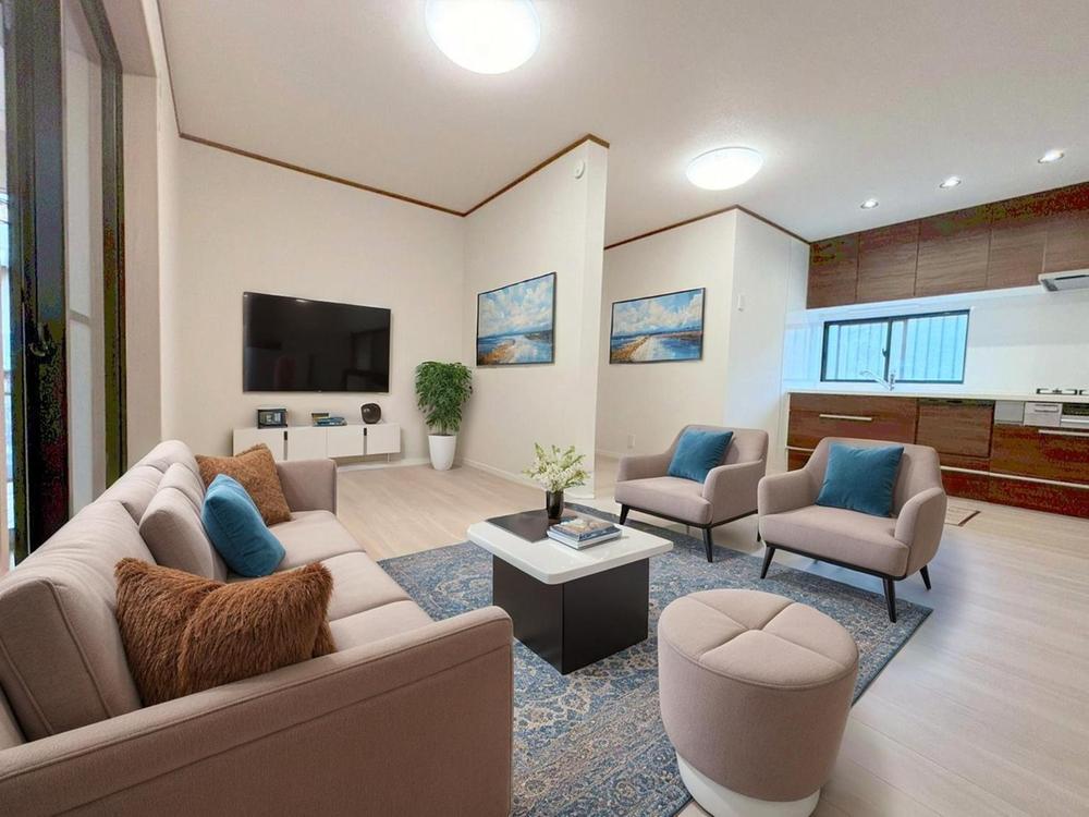 リフォーム完了しました♪希少な1階リビング♪境界をあえて少し曖昧にし、家具の配置や空間の使い方をお客様自身で自由に考える仕様です。お気軽にアムティックまで♪家具はCGです♪(令和7年10月26日撮影)