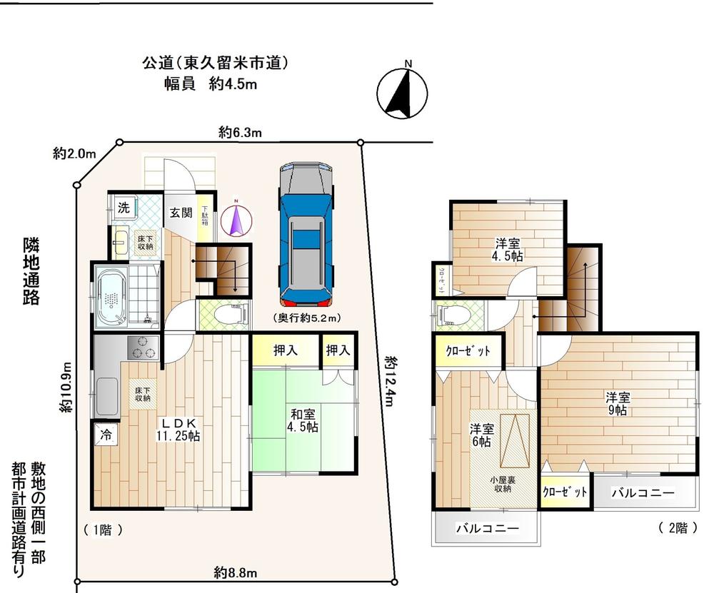 土地権利 | 所有権 | 私道負担・道路 | 無、北4.5m幅(接道幅6.3m) | ||