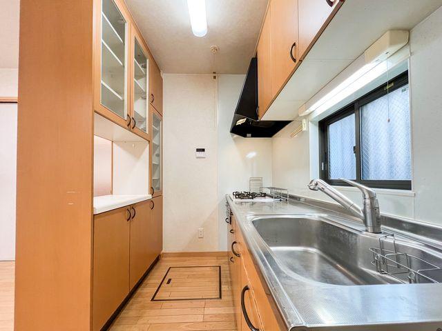 キッチン上下には大容量の収納戸棚を完備し、増えがちな調理器具や食器もスッキリ収まります。さらに、窓からは自然光が入り、手元を明る照らしてくれる設計です。
