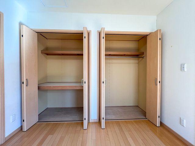 奥行きのあるワイドなクローゼット(物入)を完備しています。衣類だけでなく、季節ものの家電やスーツケースもスッキリ収まるため、居室部分を広く、自分好みのレイアウトで楽しむことが可能です。