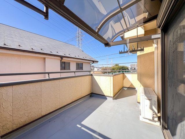 2階の洋室・タタミコーナーどちらからも出入りできる、広々としたルーフバルコニー南西向きで陽当たりも良く、周囲の視線を気にせず青空の下でリラックスできる、家族だけのプライベートテラスです。