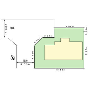 | 私道負担・道路 | 備考に記載 | 接道状況 | 南西 5.0m北西 5.0m | ||