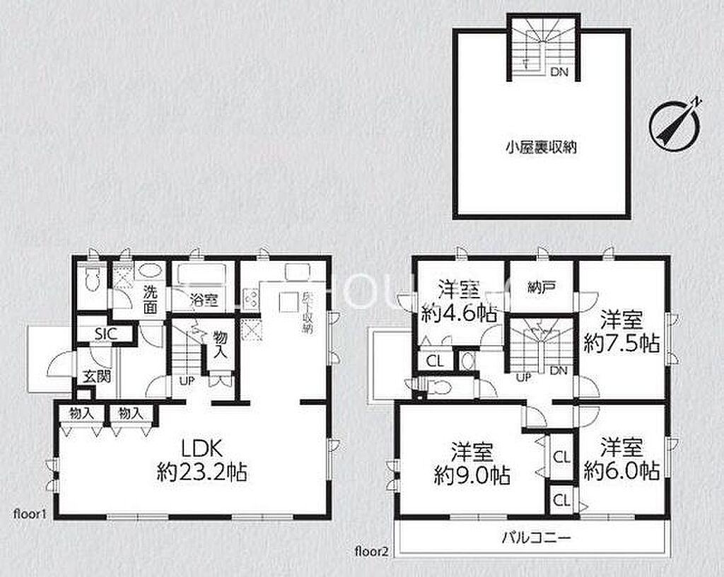 建物構造 | RC(鉄筋コンクリート)/2階建 | 間取り詳細(帖) | リビングダイニングキッチン 23帖(1階)洋室 9帖(2階)洋室 7.5帖(2階)洋室 6帖(2階)洋室 4.6帖(2階) | ||