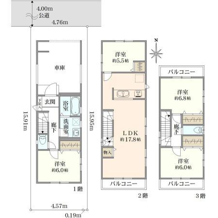 | 土地権利 | 所有権 | 私道負担・道路 | 無、北4m幅(接道幅4.7m) | ||