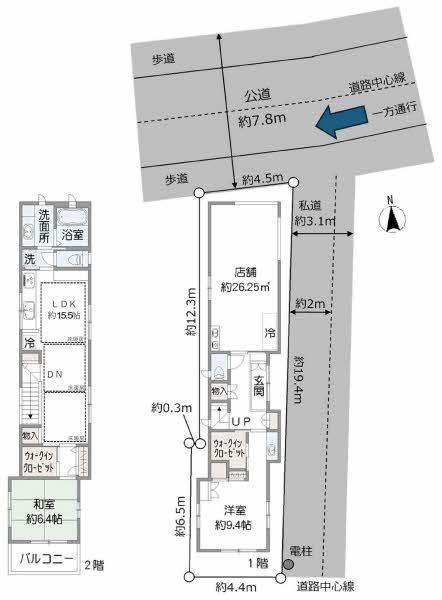 用途地域 | 近隣商業、1種住居 | 建ぺい率・容積率 | 80%・300% | ||