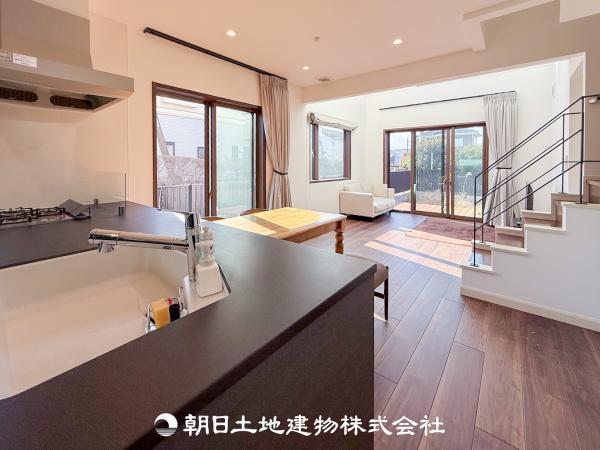 【吹抜け】開放的で明るい空間が広がるLDK。リビングには潤沢な太陽が降り注ぎ、爽やかな住空間を演出できます