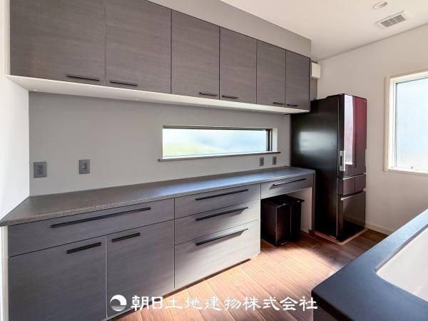 【カップボード】たっぷりの収納スペースがあれば、調理器具やキッチン家電もすっきりしまえるので毎日のお料理も楽ちんで快適に暮らせそうです