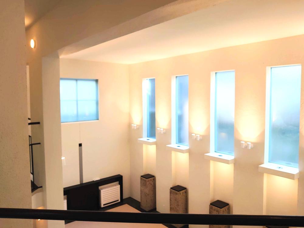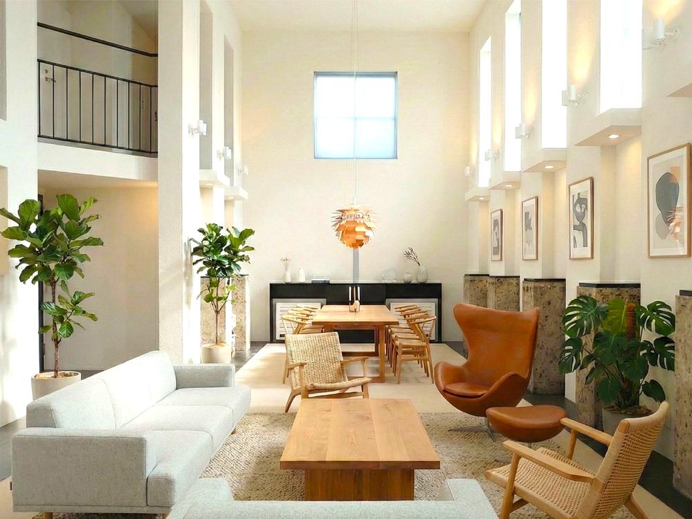 まるで光の聖堂。30帖を貫くダイナミックな吹き抜けは、高窓からの陽光を劇的に受け止めます。3層構成が生む垂直の美と、息をのむ開放感。日常の光景すべてがアートになる、圧倒的な空間体験がここにあります