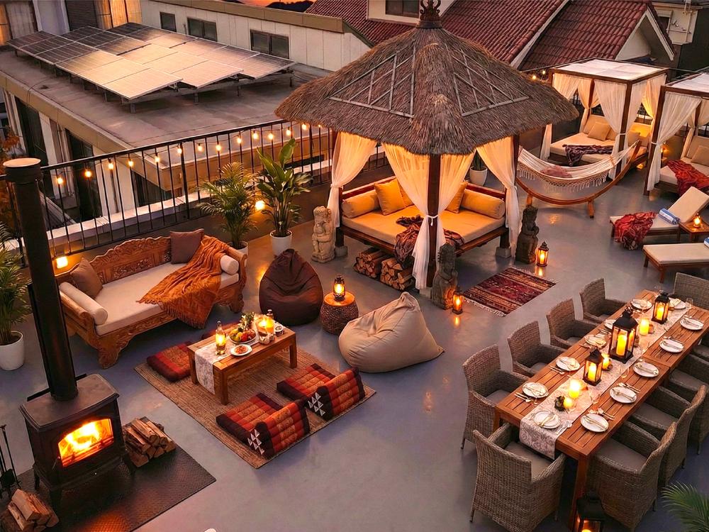 茜色から群青へ、あるいは紫から黄金色へ一日で最も美しい「マジックアワー」のグラデーション。遮るもののない屋上で、刻々と変わる空の色に全身で包まれる体験は、何物にも代えがたい贅沢なドラマ