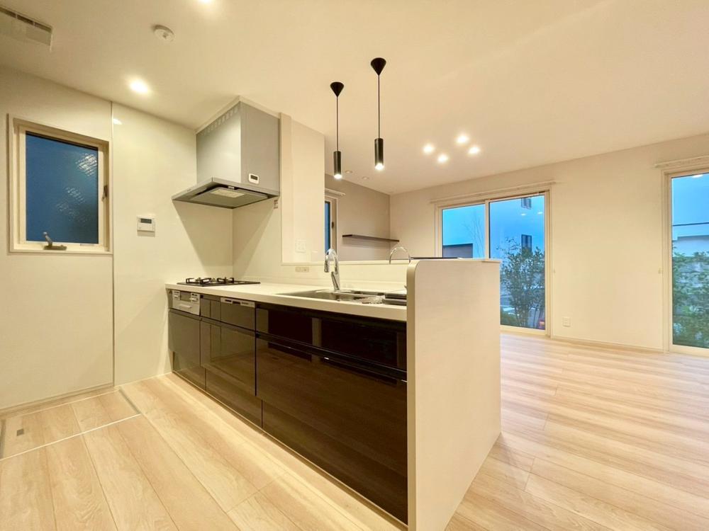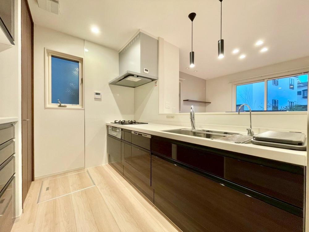 家事の時短に効果的な収納のし易いオールスライド収納、綺麗を保ち易い人造大理石トップ、静音シンクなど、使い勝手の良いキッチンを新規導入致しました。
