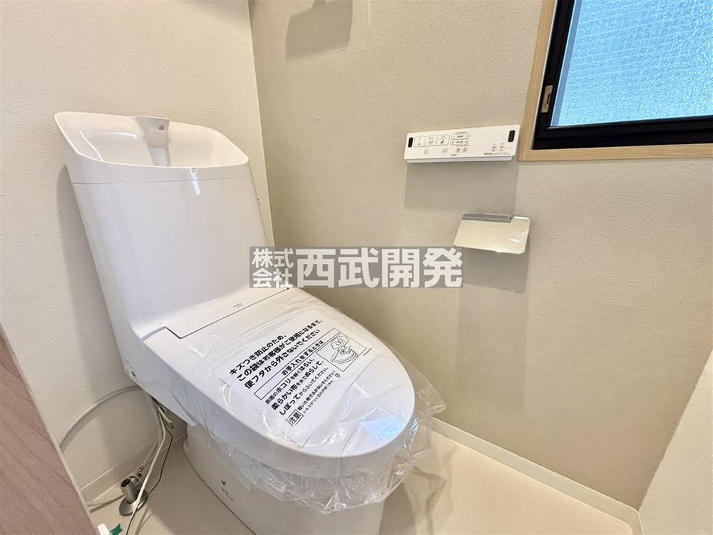 白を基調とした清潔感のあるウォシュレット付きの1階トイレはリラックスできる空間です。窓付きですので衛生面にも配慮されています。