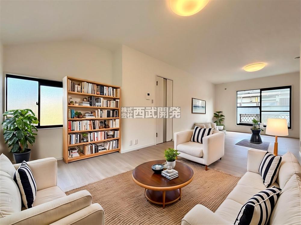 広々としたリビング空間。お友達やご家族を呼んでホームパーティはいかがでしょうか。【配置してある家具や小物はCGによるイメージです。】