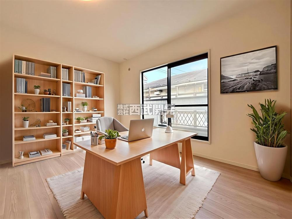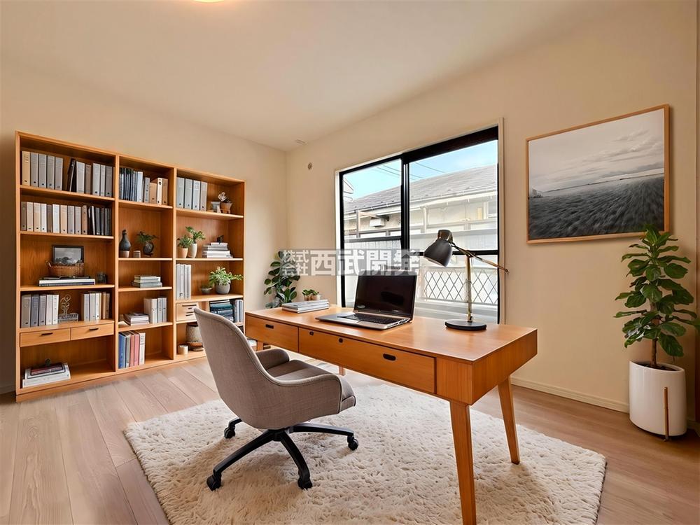 気持ちの良い陽光が差し込む2F洋間。お休みの日は読書や音楽鑑賞などのんびりすごせそうです。【配置してある家具や小物はCGによるイメージです。】
