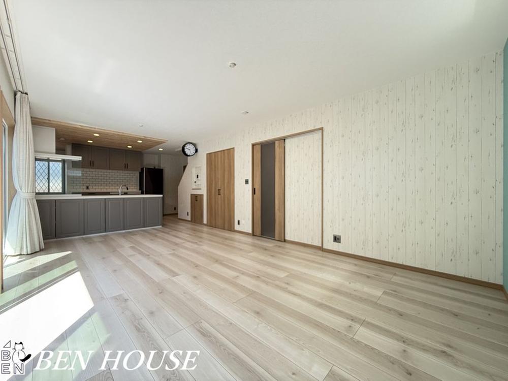 ・ほぼ南に面した大きな窓から採光もたっぷり取り込むことができます・ゆとりの広さで家具を配置してもご家族皆さまでゆったり過ごせます・たっぷり収納可能なパントリーも完備です・是非ご確認ください