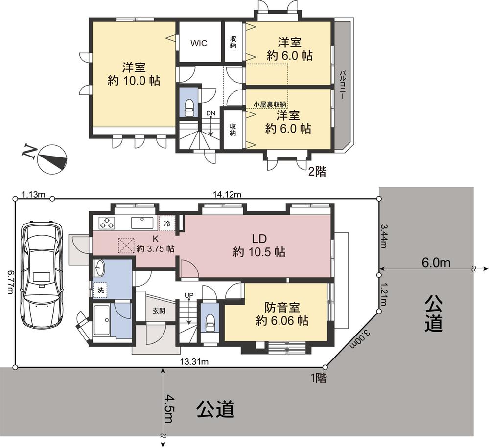 月々のローン返済額を試算6.0m×4.5m公道に面する南西角地 陽当良好 6帖の防音室あり