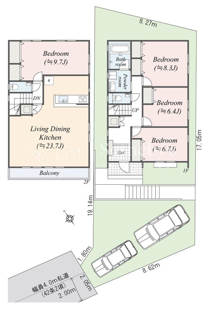 | 借地料 | 3万9970円/月 | 私道負担・道路 | 無、西4m幅 | ||