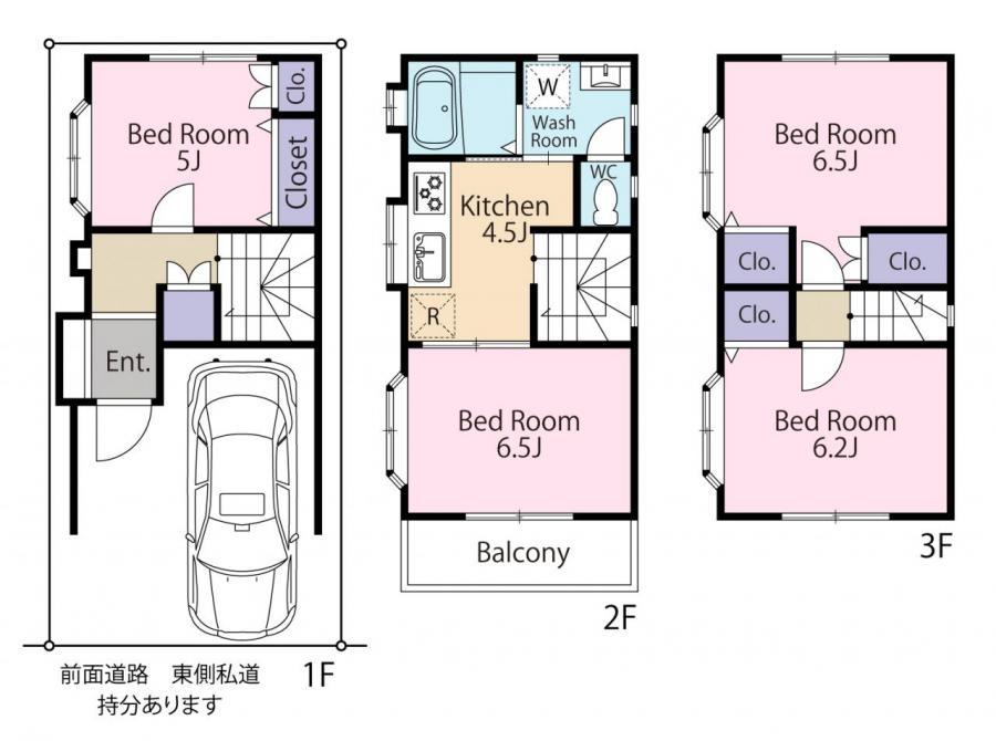 | 土地権利 | 所有権 | 私道負担・道路 | 共有持分12.42㎡×(1/1)、東4m幅 | ||