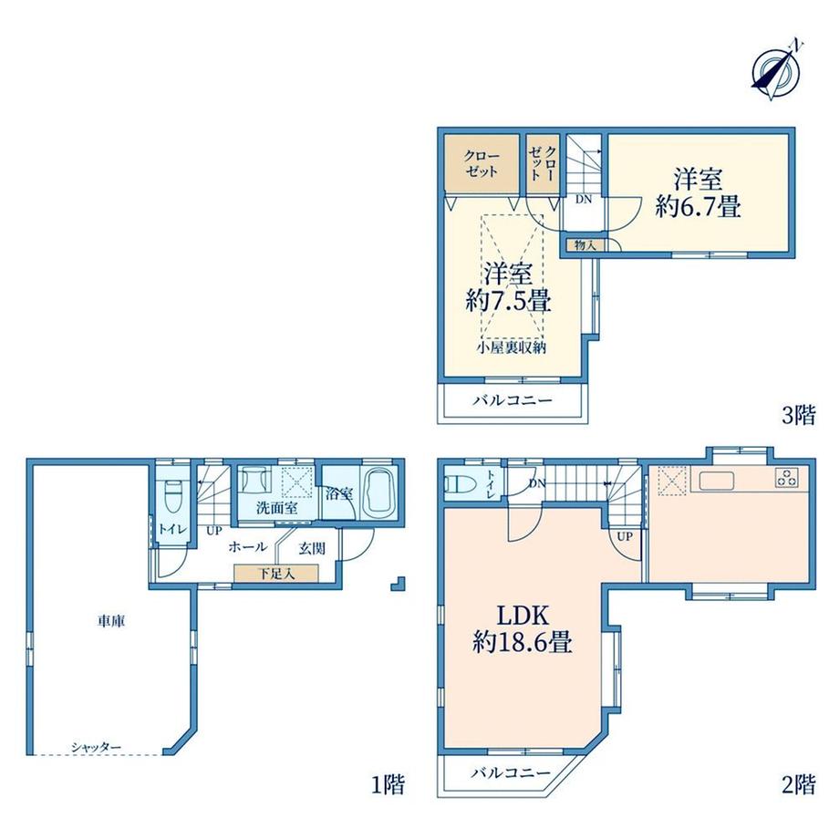 月々のローン返済額を試算車1台バイク3台駐車可(車種によります)ビルトインガレージ付の戸建