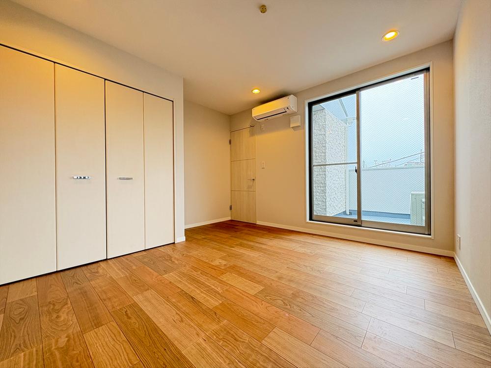 ~1F洋室~1階に位置する約7.89帖の洋室。3面採光により、心地よい光と風が通り抜けます。全室フローリング上張り・クロス張替え済みで、新築同様の清潔感溢れる空間です。クローゼットもございます。