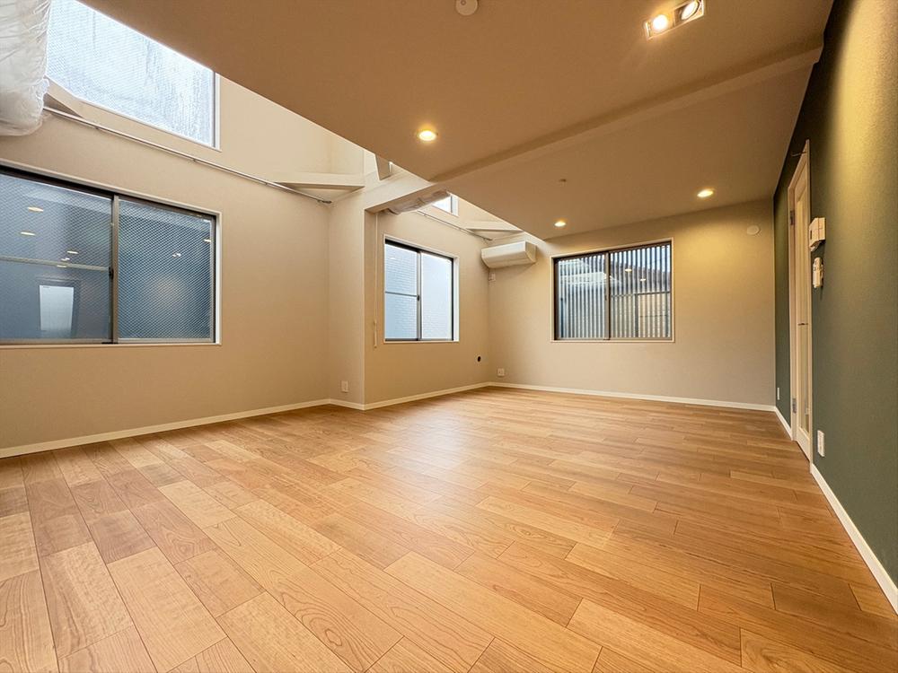 ~陽光注ぐ18.94帖のLDK~吹き抜けと角地の利点を活かした、日当たり良好なLDK。フローリングやクロスを刷新し、木の温もり感じる上質な空間に。家族が自然と集まる、開放感溢れる住まいの中心です。
