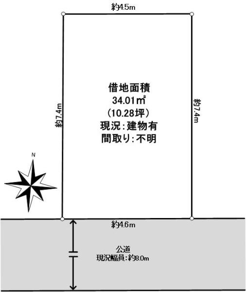 | 借地料 | 1万32円/月 | 私道負担・道路 | 無、南8m幅(接道幅4.6m) | ||