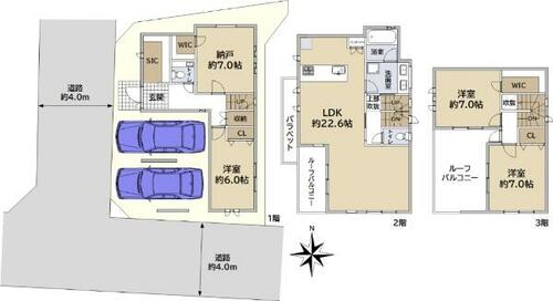 | 備考 | 駐車スペース:車種による納戸(サービスルーム)約7.0帖/総住戸数:1戸・セットバック:済・私道負担:あり10.84平米・◆南西角地 ◆陽当り良好 ◆3LDK+納戸 | ||||