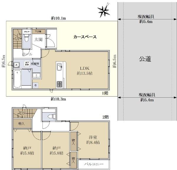 | 土地権利 | 所有権 | 私道負担・道路 | 無、北東5.4m幅(接道幅6.5m) | ||