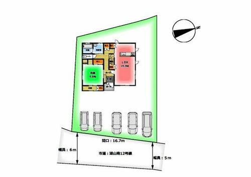 | 私道負担・道路 | - | 接道状況 | 東 5.0m 公道 接面16.7m | ||
