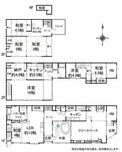 | 備考 | 建物未登記部分有・準防火地域手前側:木造瓦葺2階建 床面積63.10㎡ 築年月不詳奥側:鉄骨造陸屋根4階建 床面積180.05㎡ 昭和45年10月新築・昭和45年12月変更・増築・JR氷見線氷見駅徒歩5分!祇園宮日吉神社すぐ目の前!住居としてだけでなく、ゲストハウスや店舗・事務所としても!内見ご希望の方は、ご予約をお願いいたします。 | ||||
