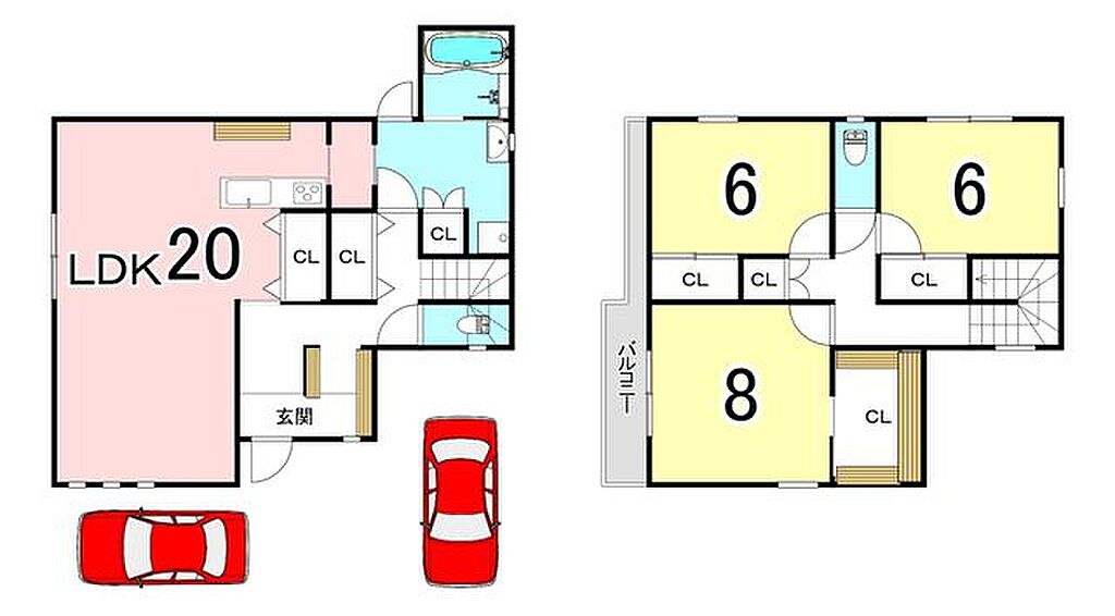 | その他 | オートバス、トイレ2ヶ所以上、所有権、木造、上下水道、全室フローリング、2階建て、全居室収納、クローゼット、駐車場あり、駐車場2台以上、駐車場3台以上、平坦地 | ||||