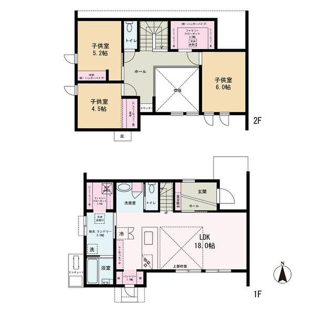 | 設備・サービス | 床下収納、公営水道、温水洗浄便座、シャワー、洗面所独立、エアコン、ウォークインクローゼット、オール電化、浴室乾燥機、吹き抜け、追焚機能、シャワー付洗面化粧台、パントリー | ||||