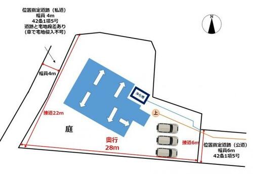 | 私道負担・道路 | - | 接道状況 | 東 6.0m 公道西 4.0m 私道 | ||