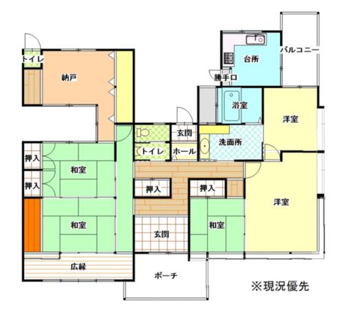| 備考 | 接面道路は建築基準法上の道路ではないので、再建築のためには建築基準法第43条第2項第2号の許可を要します。・私道負担:あり296平米(共有持分:1/2)・広々とした延床面積151.7㎡の居室空間、更にウッドチェアやデッキが置けちゃう50坪以上の庭有の住居だから、ちょっとした運動や遊びものびのび楽しめます。 | ||||