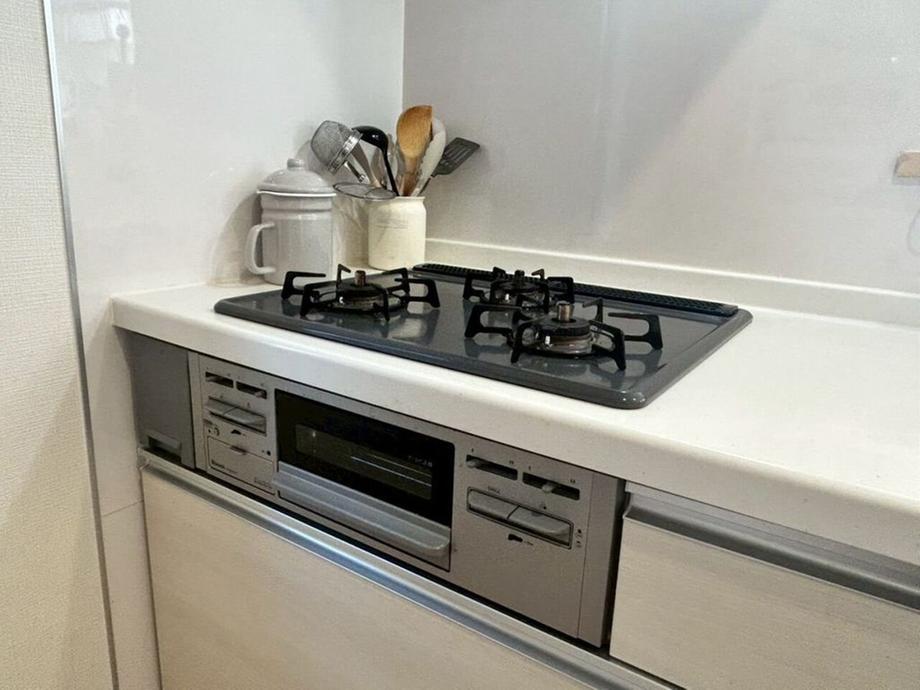 使いやすい三口コンロ!同時に複数の料理が作れて時短になりますね!